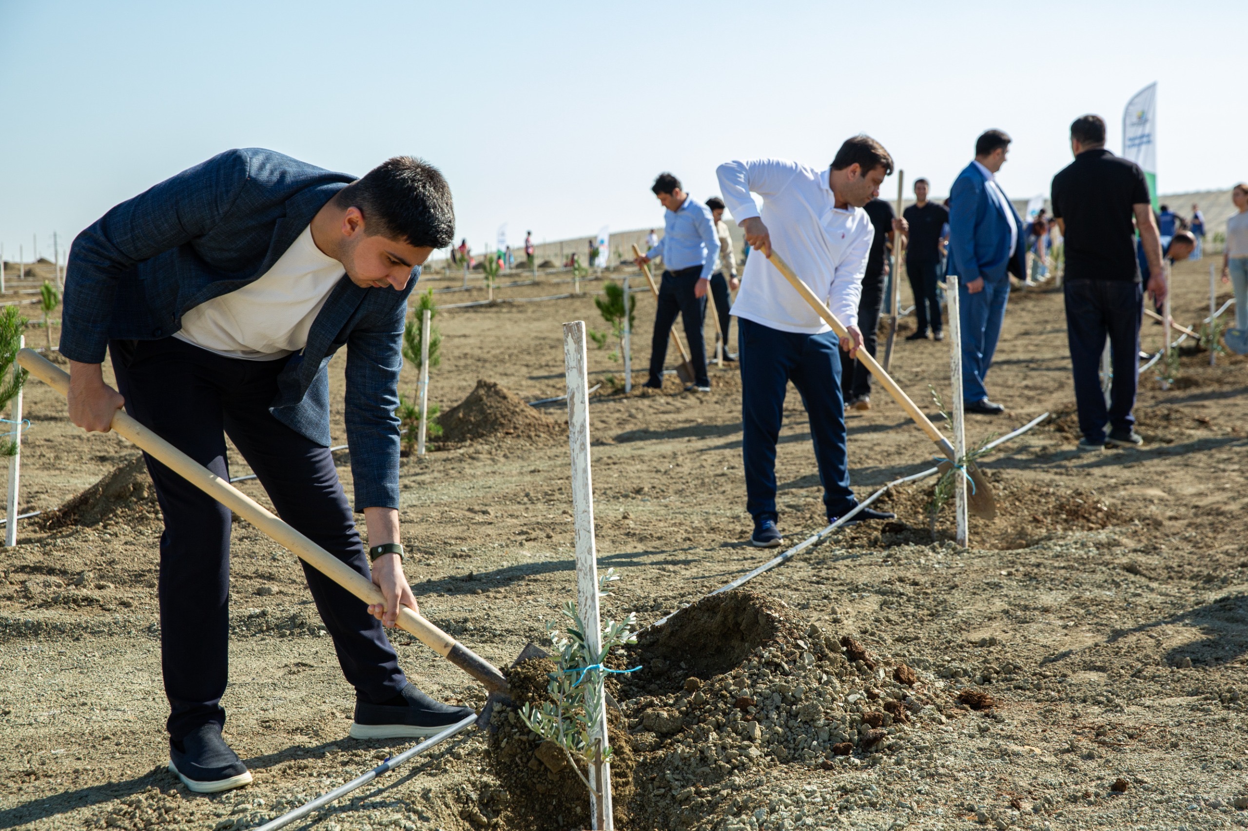 Aksiyada ekologiya və təbii sərvətlər nazirinin birinci müavini Rəşad İsmayılov, Mənzil İnşaatı Dövlət Agentliyinin İdarə Heyətinin sədri Sadiq Sadıqov, həmçinin hər iki qurumun nümayəndələrinin və ekokönüllülərin iştirakı ilə Abşeron yarımadasının torpaq-iqlim şəraitinə uyğun Eldar şamı və zeytun ağacları əkilib.