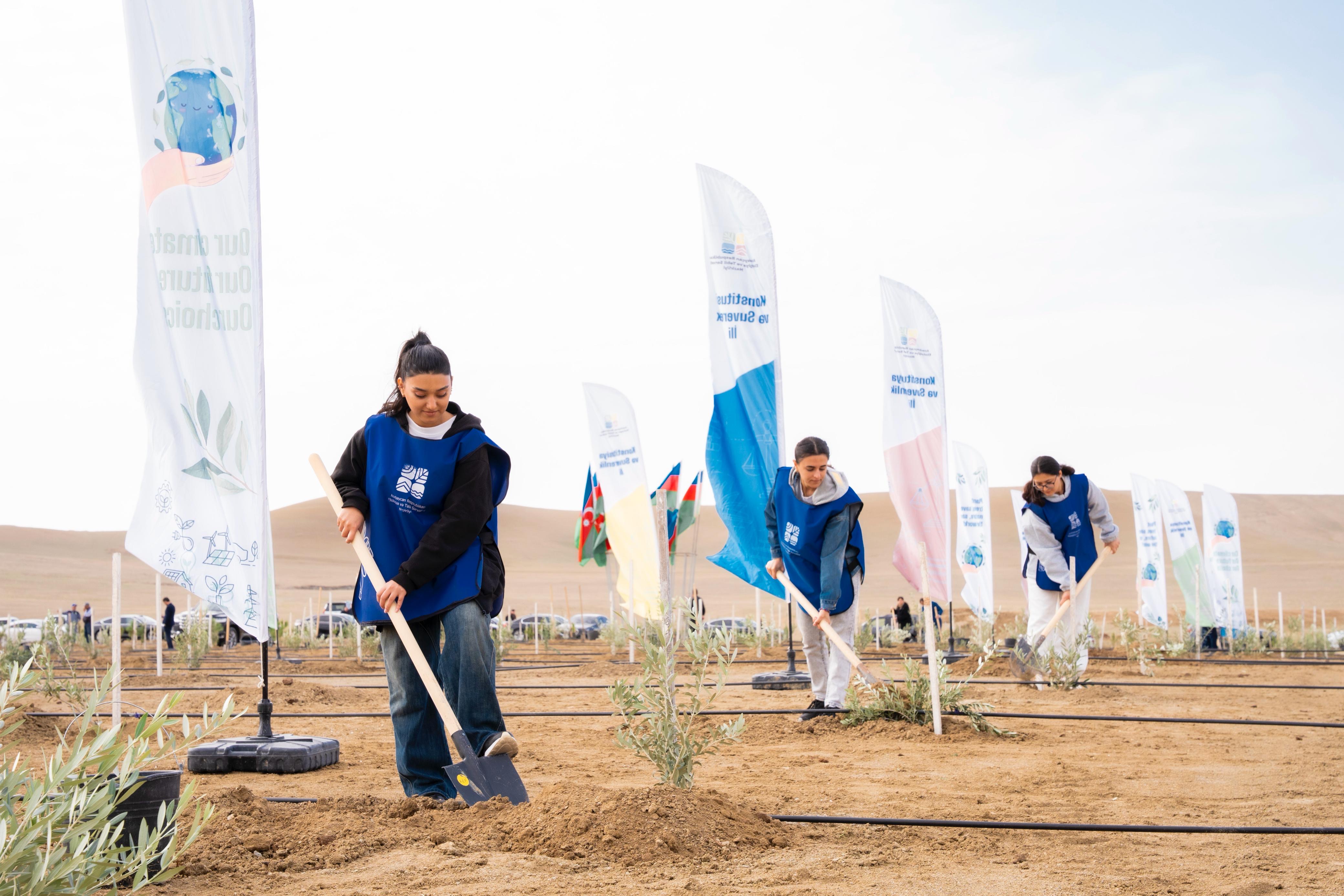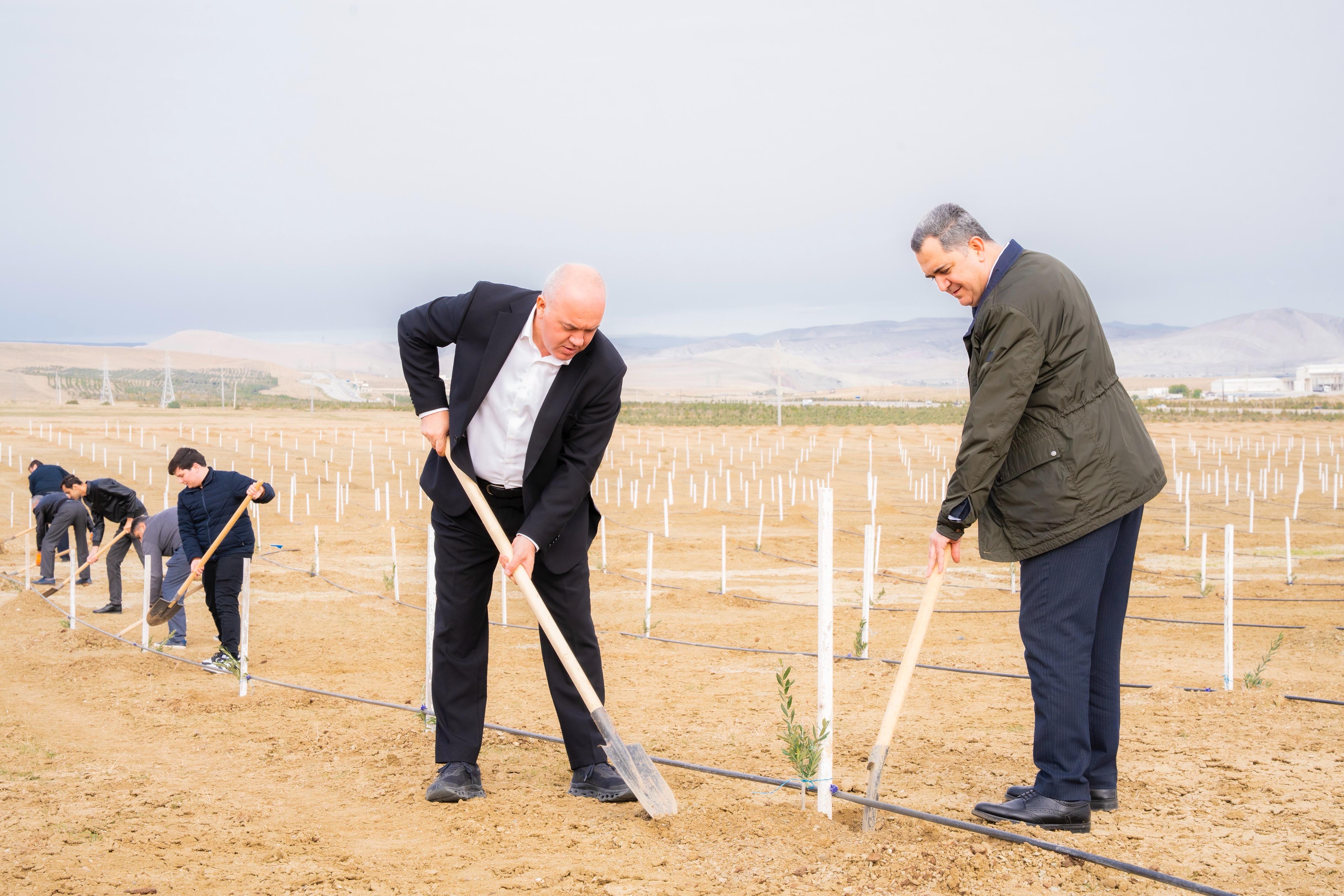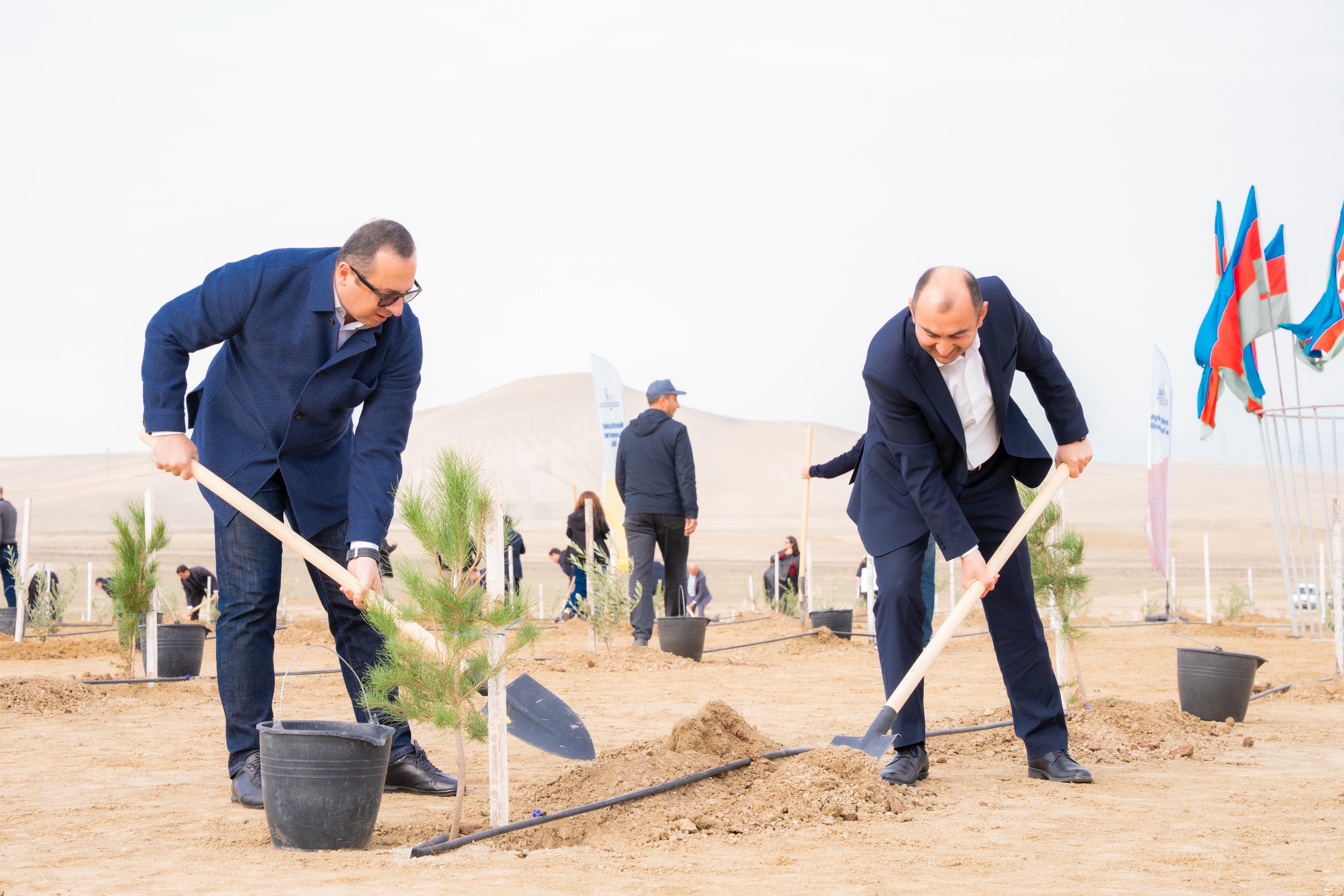 Tədbir çərçivəsində Abşeron yarımadasının torpaq-iqlim şəraitinə uyğun Eldar şamı və zeytun ağacları əkilib.