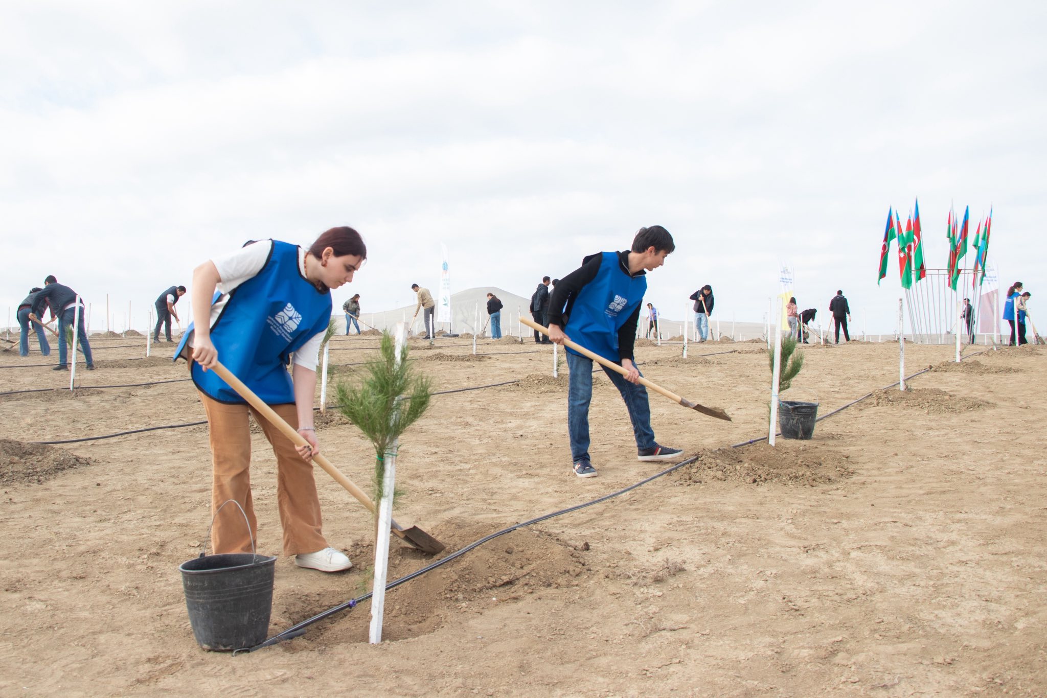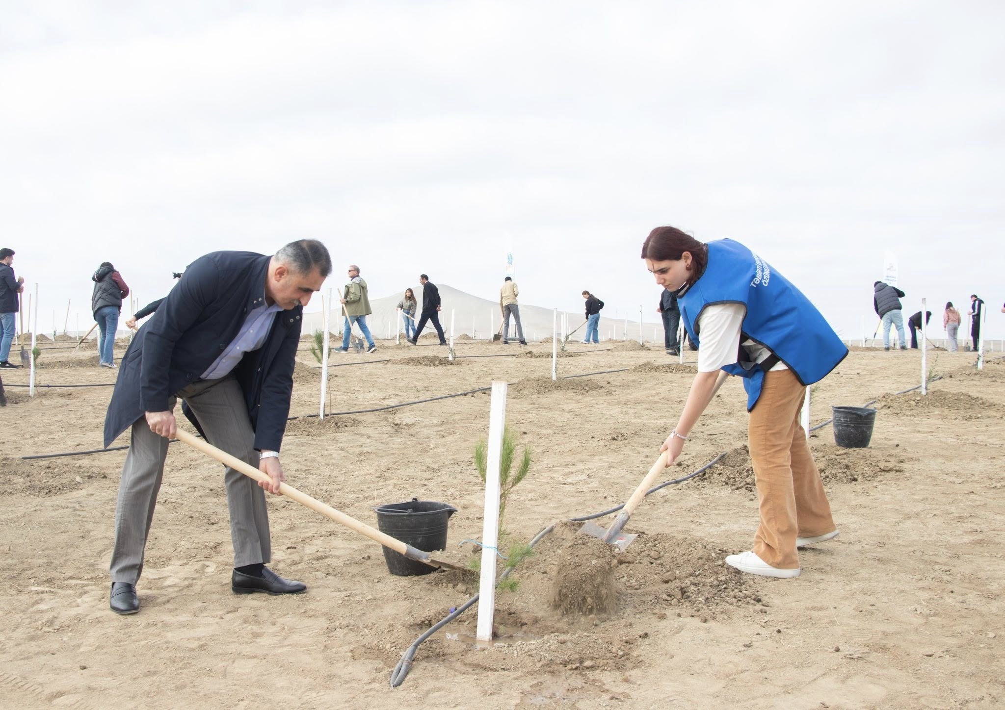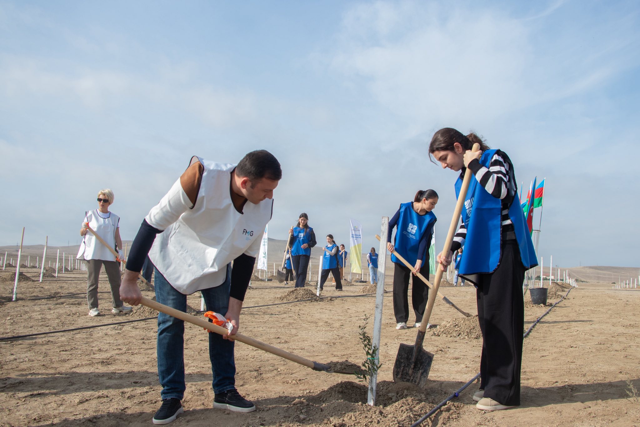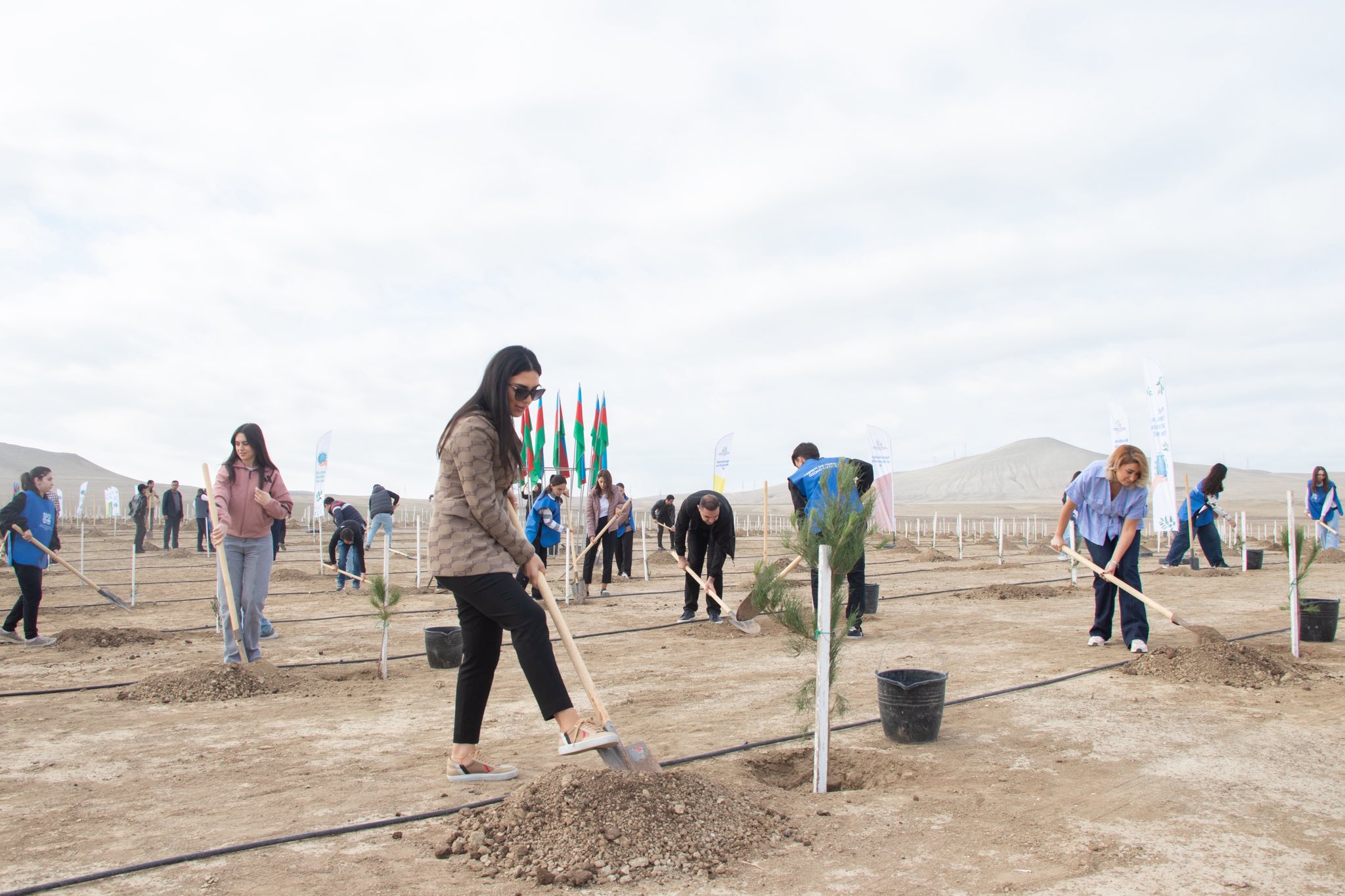 Aksiya çərçivəsində Müşfiqabad qəsəbəsində Abşeron yarımadasının torpaq-iqlim şəraitinə uyğun Eldar şamı və zeytun ağacları əkilib.