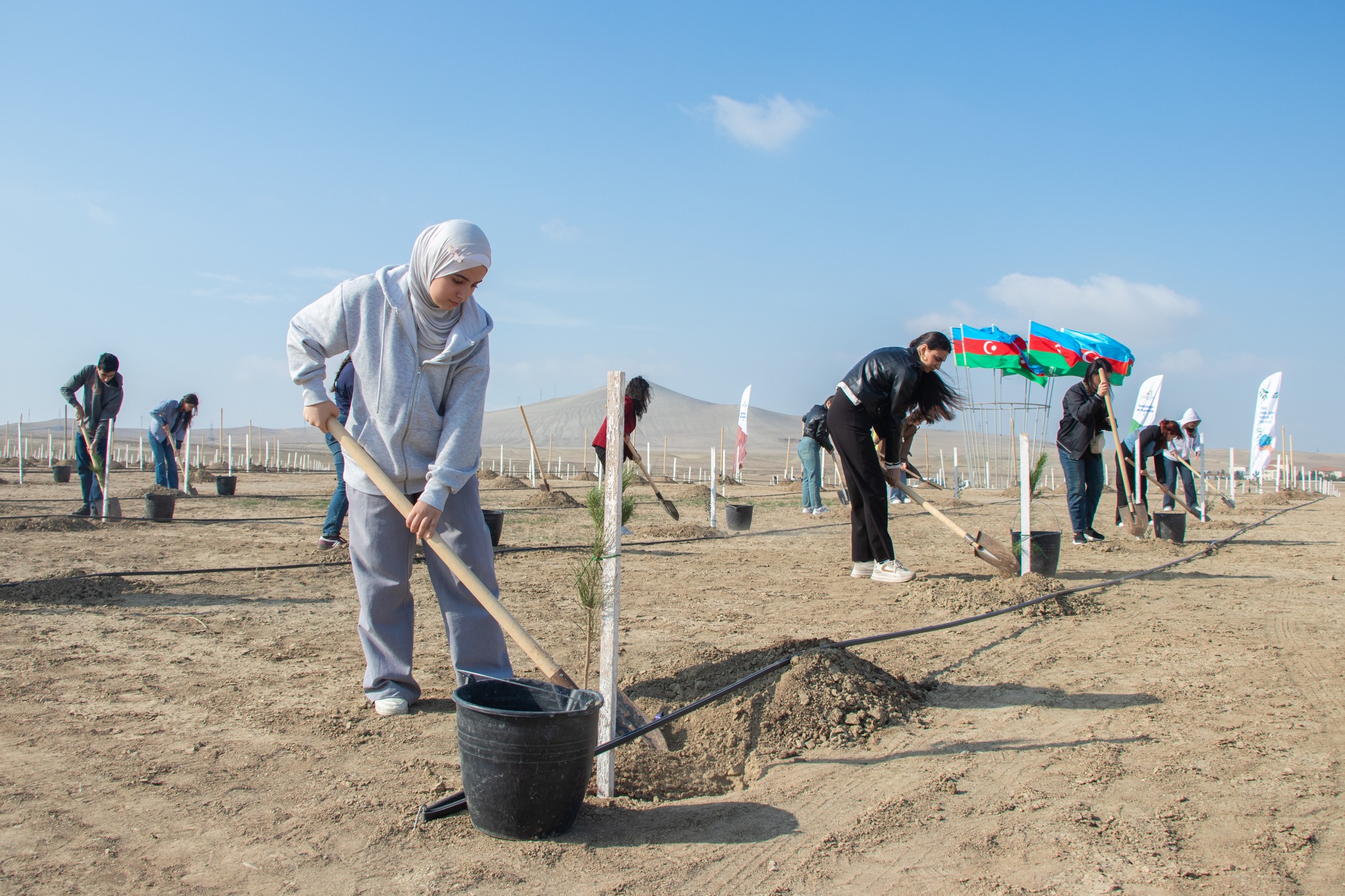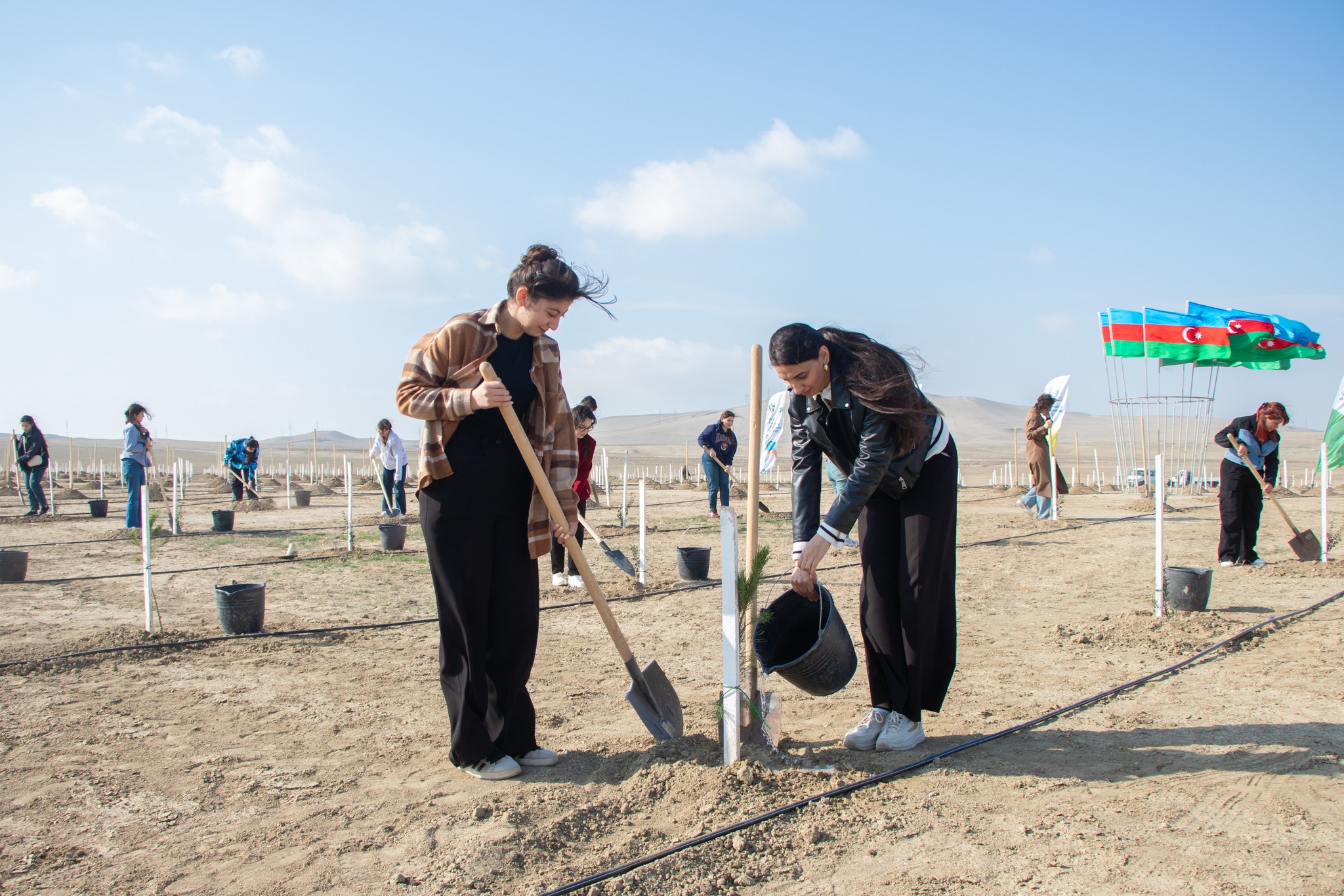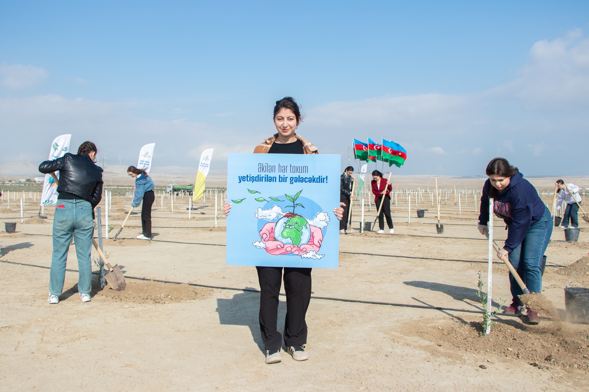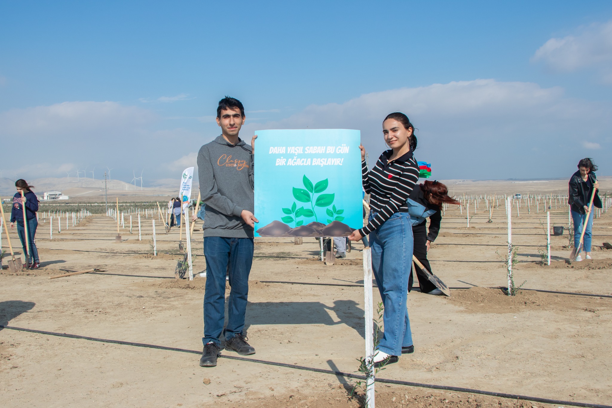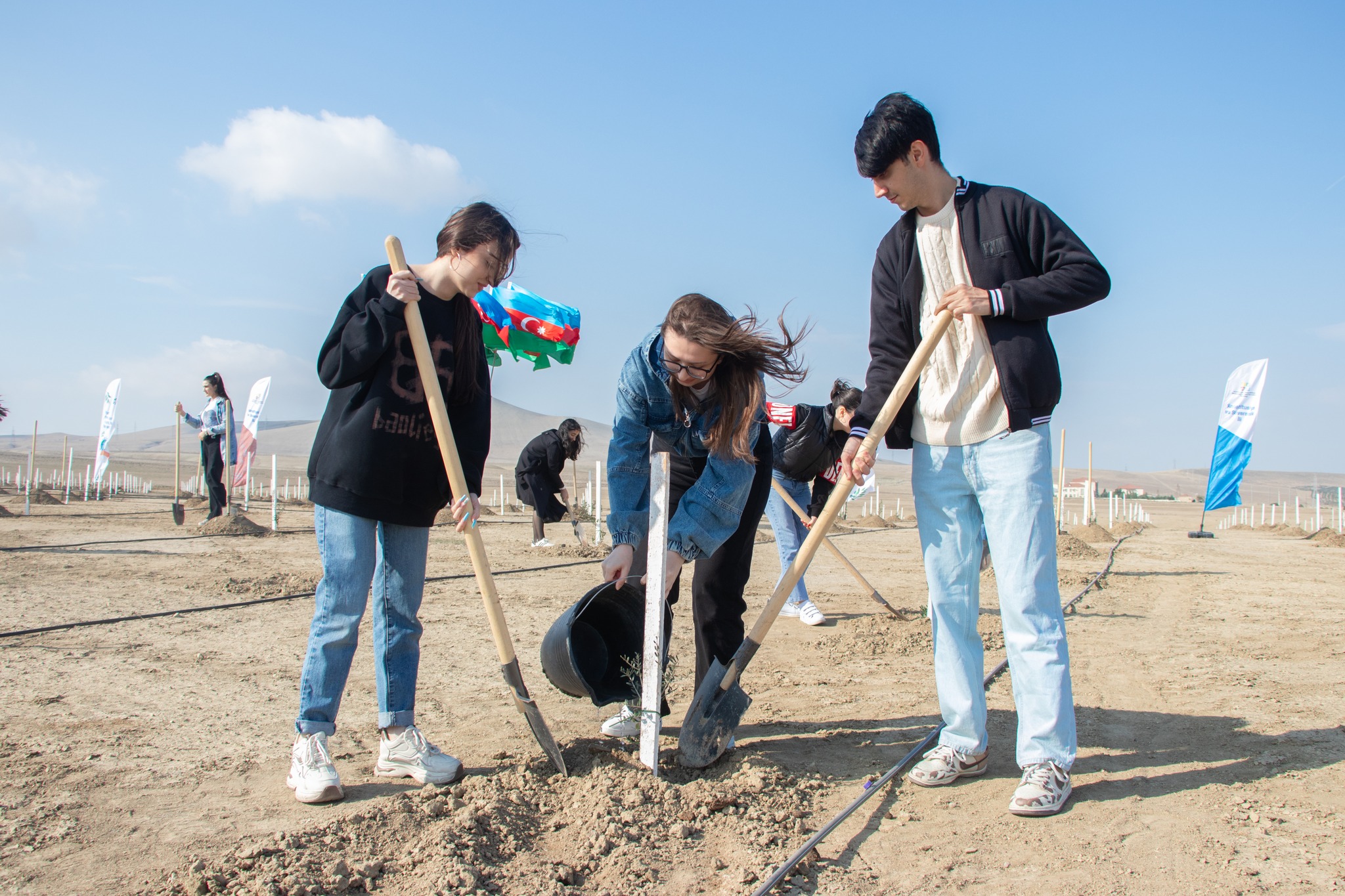 Aksiya çərçivəsində Abşeron yarımadasının torpaq-iqlim şəraitinə uyğun Eldar şamı və zeytun ağacları əkilib.