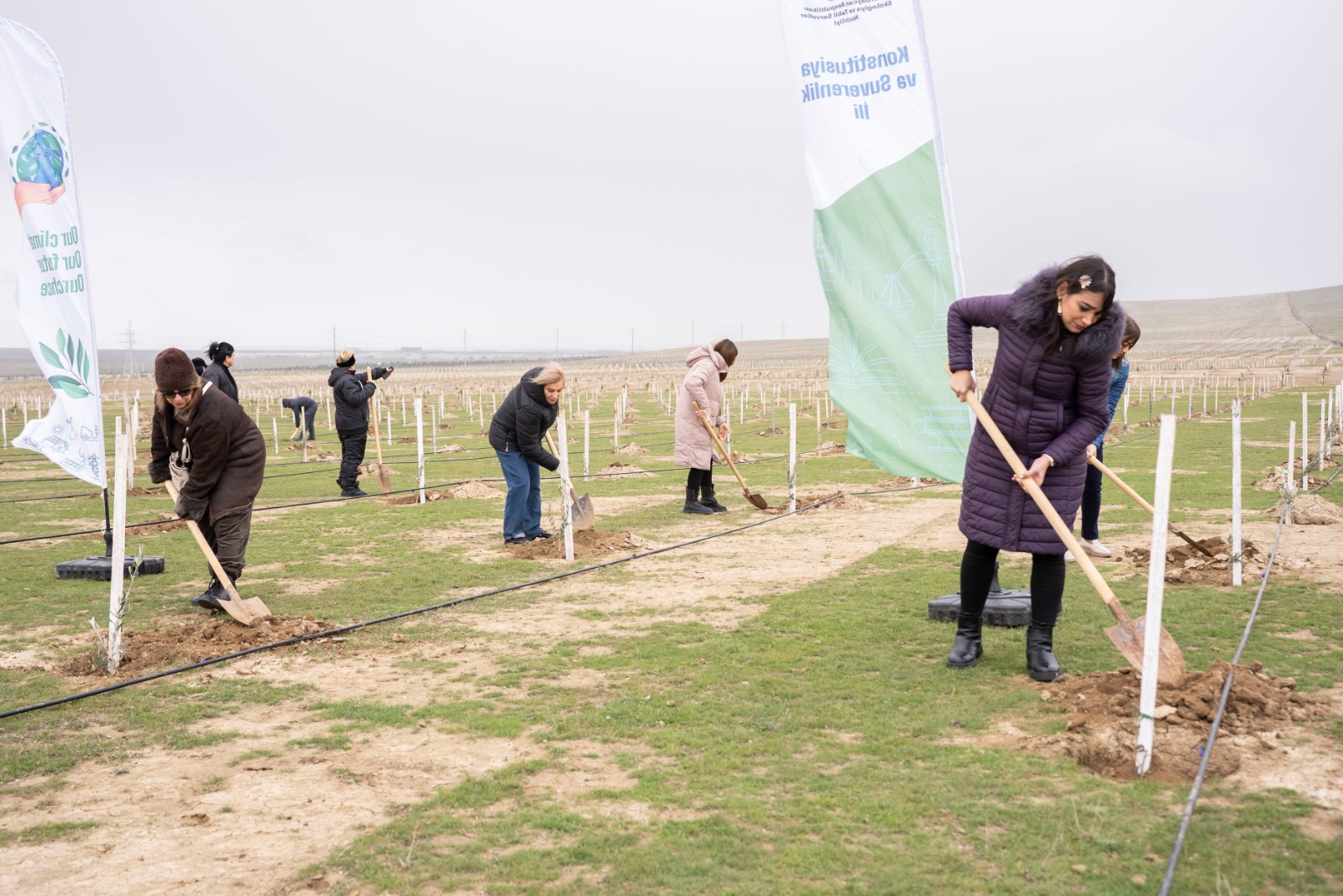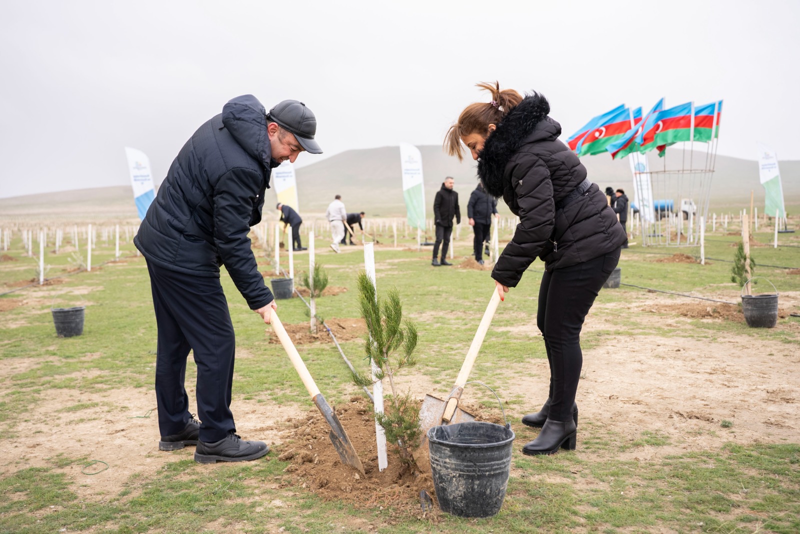 Tədbir çərçivəsində Abşeron yarımadasının torpaq-iqlim şəraitinə uyğun Eldar şamı və zeytun ağacları əkilib.