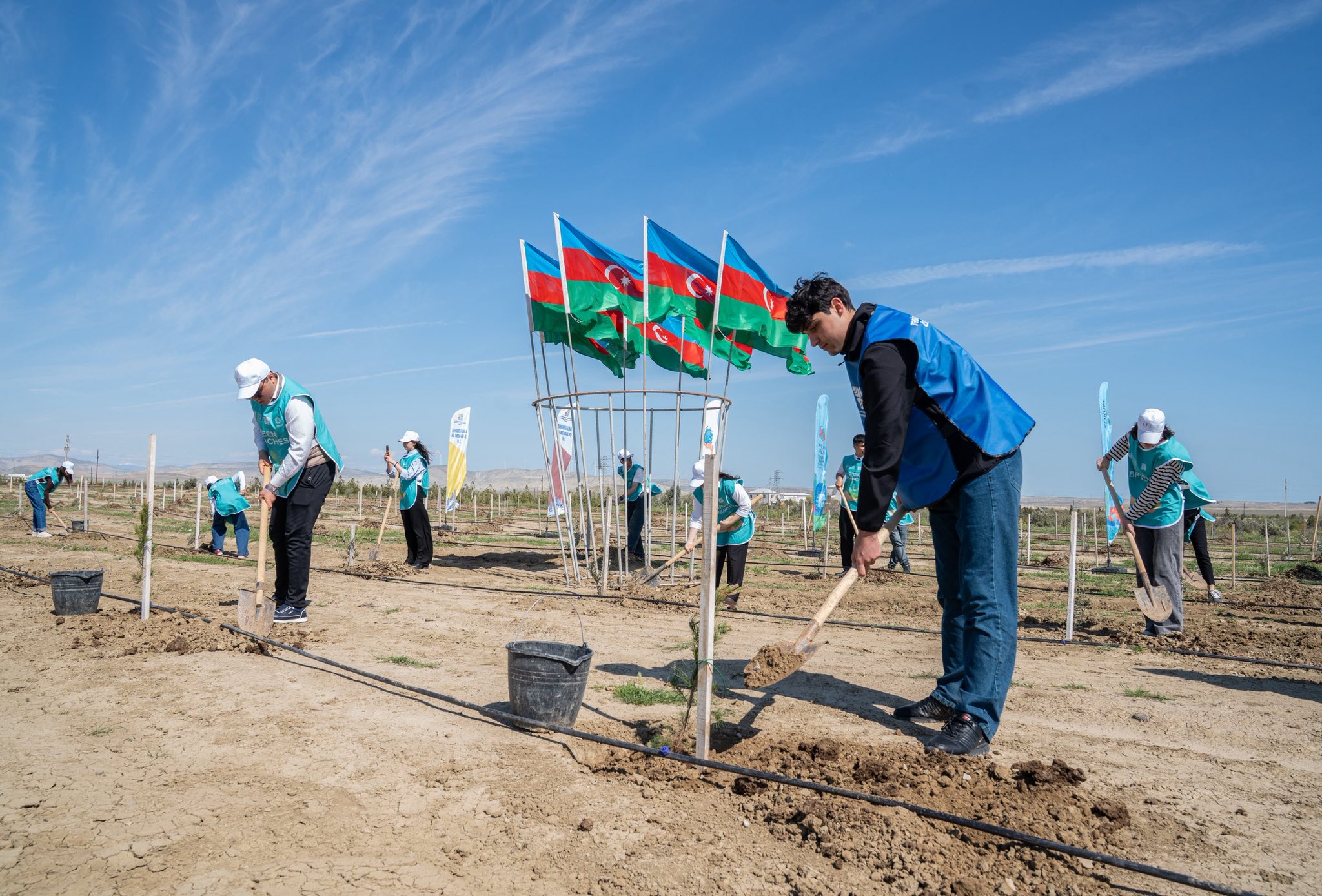 Aksiya çərçivəsində Abşeron yarımadasının torpaq-iqlim şəraitinə uyğun 300-dən çox Eldar şamı və zeytun ağacları əkilib.