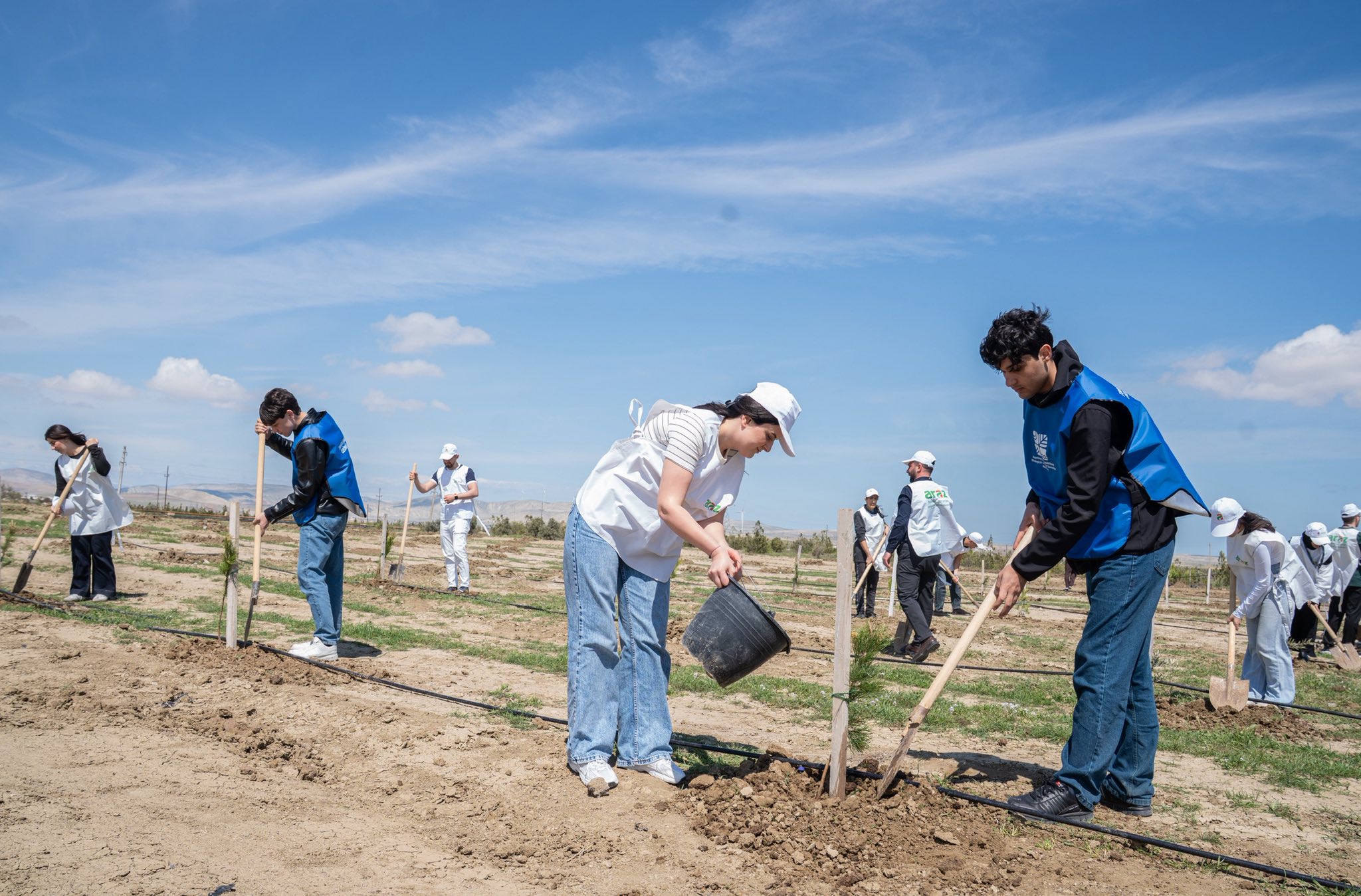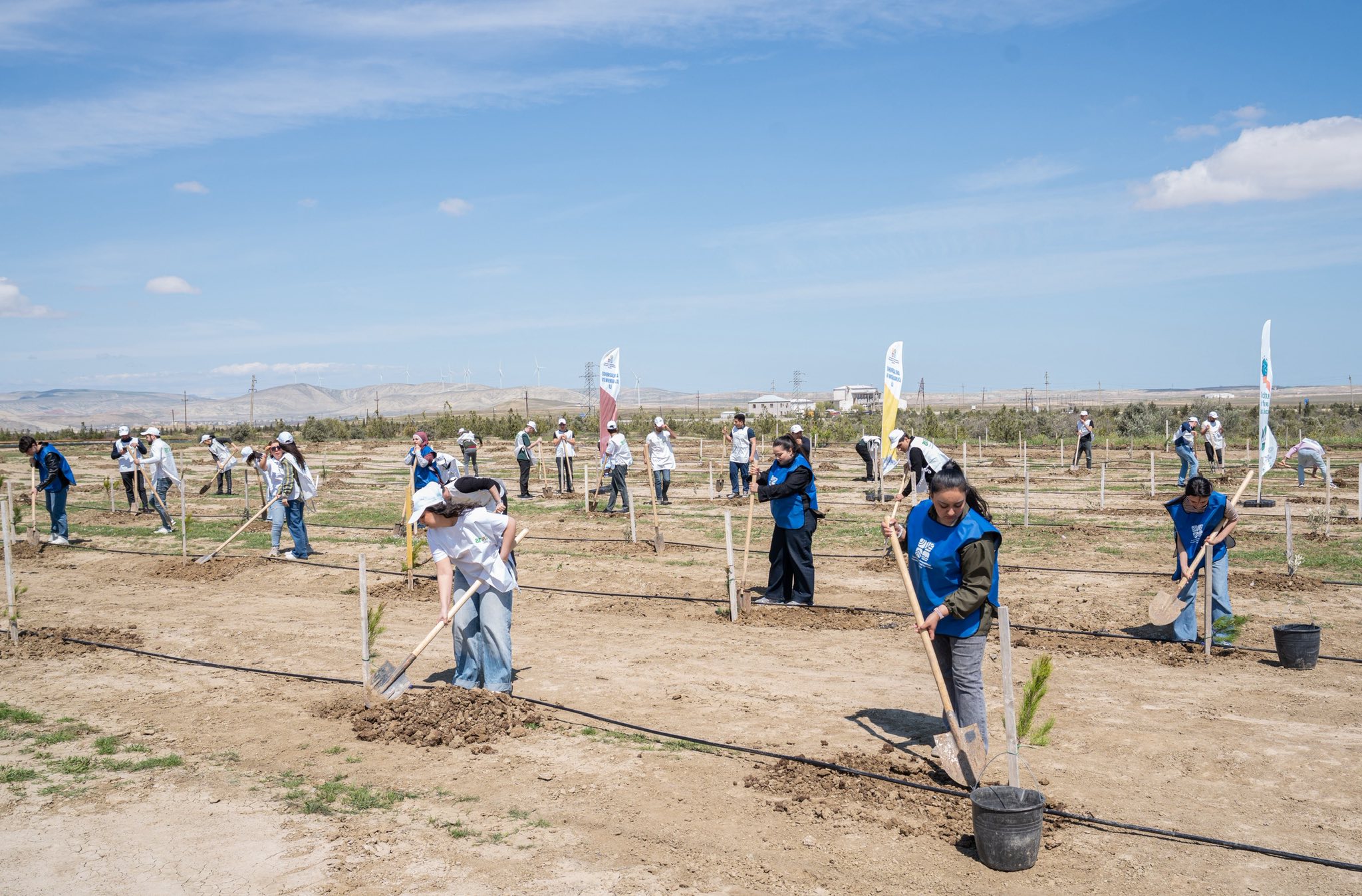 Aksiyalar çərçivəsində Abşeron yarımadasının torpaq-iqlim şəraitinə uyğun Eldar şamı və zeytun ağacları əkilib.