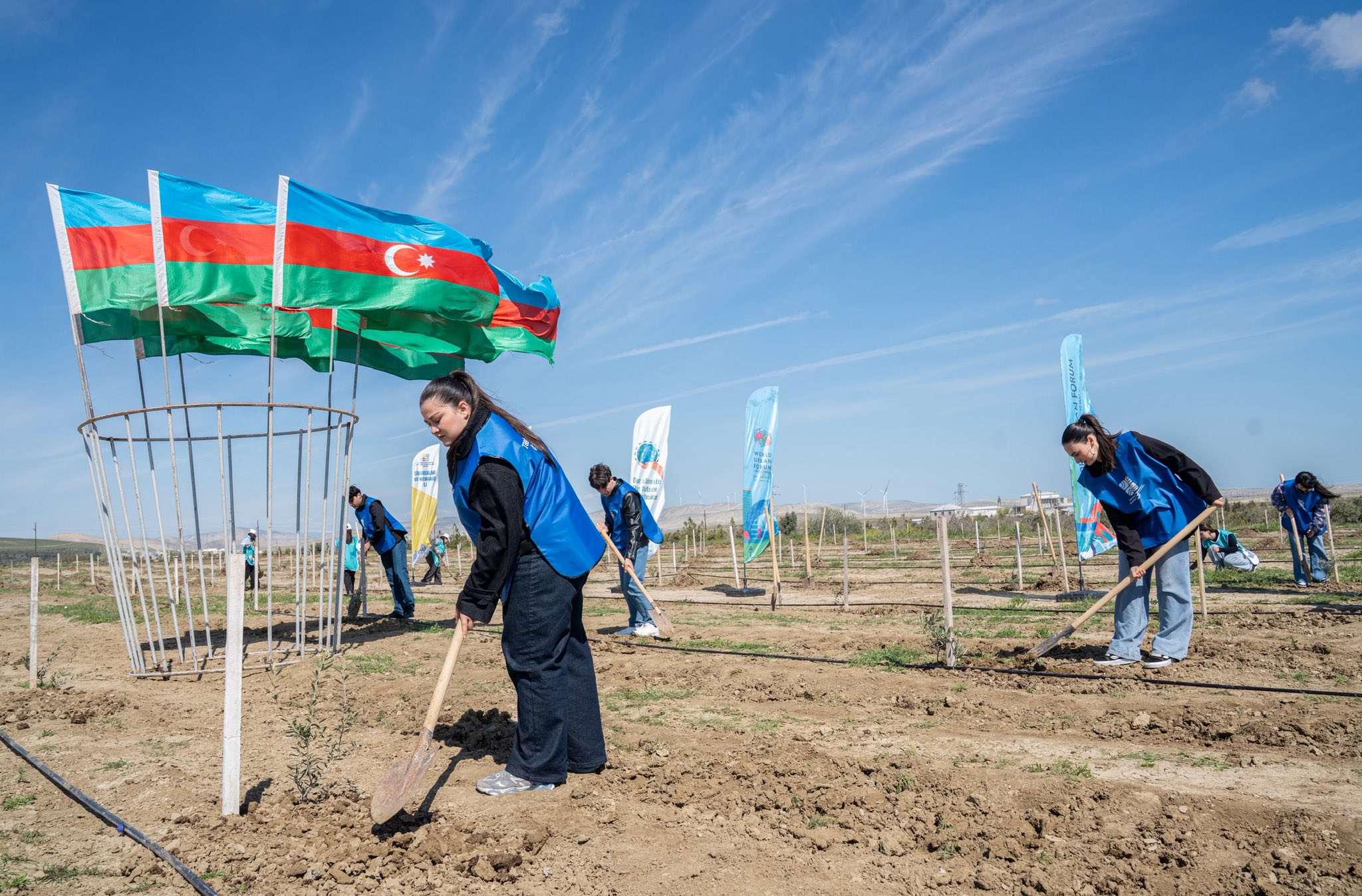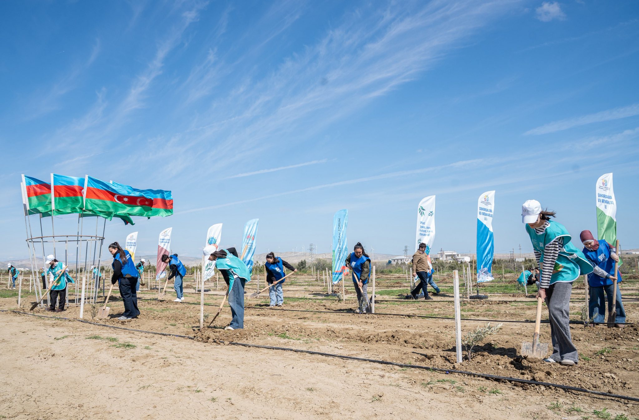 Aksiya çərçivəsində Abşeron yarımadasının torpaq-iqlim şəraitinə uyğun 300-dən çox Eldar şamı və zeytun ağacları əkilib.