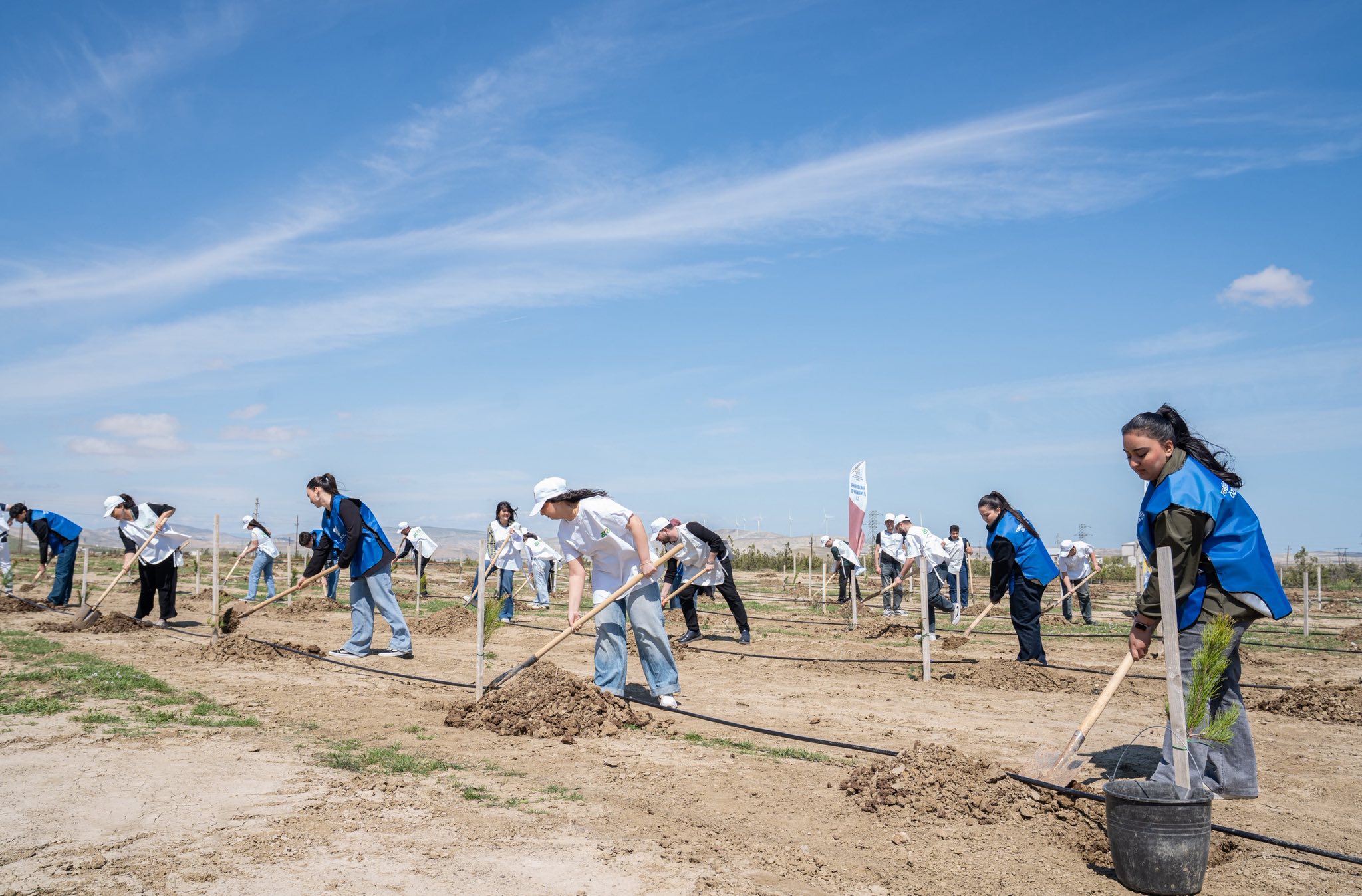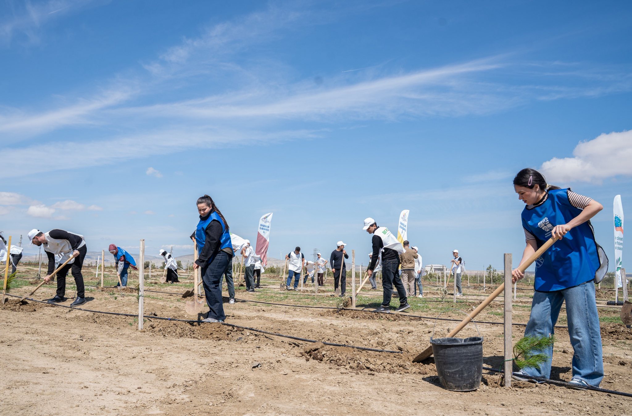 Aksiyalar çərçivəsində Abşeron yarımadasının torpaq-iqlim şəraitinə uyğun Eldar şamı və zeytun ağacları əkilib.